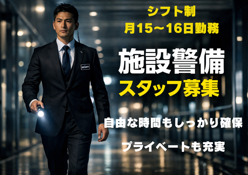 求めている人材 ・18歳以上(警備業法によるもの) #学歴・年齢・性別不問! 40代・50代のミドル世代から、60代・70代のシニア世代まで幅広く活躍中。 #未経験者歓迎 「警備の仕事は初めて」という方も、丁寧な研修があるので安心です。難しい機械操作や複雑な業務はありません。 【こんな方にぴったりです】 ✅「快適な環境」で働きたい方 勤務地は最新設備の整ったピカピカの綺麗なビル。 空調完備で、夏は涼しく冬は暖かいため、体力的な負担が非常に少ないのが魅力です。 ✅「天候」に左右されたくない方 屋内での巡回・受付業務がメイン。 雨や風にさらされる心配がないので、安定したコンディションで長く続けられます。 ✅「誠実な対応」ができる方 難しいスキルよりも、挨拶や丁寧な出入管理など、当たり前のことをコツコツ取り組める方を求めています。 <各種検定所持者優遇> #交通誘導 #施設管理 #巡回 #施設警備 #雑踏警備1級・2級など