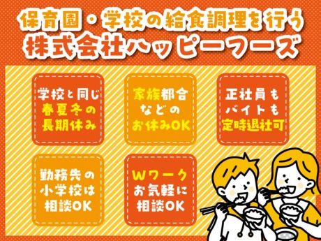 仕事内容 【家庭での食事準備が出来る方であれば、 すぐに始められる簡単な給食の調理補助です◎】 子育て中の主婦(夫)から ミドル・シニアまで幅広い年代が活躍中! まったくの未経験から始めている方が多数在籍しています! ▼…おすすめPOINT…▼ ●資格や経験不問!料理が好きな方大歓迎! ●15時退勤&土日祝休みで家事や育児との相性抜群! ●急用やご家庭の事情によるお休みも可能! ●扶養内勤務も調整OK!ご相談ください! ●春休み、夏休み、年末年始休みありで お子様の予定等にも合わせやすい◎ 【マニュアルに沿った給食づくりをお願いします】 具体的には… ●食材の下処理、カット等の調理補助 ●食器、調理器具の洗浄 など 調理の手順など、マニュアルがあるので心配無用です! 業務は丁寧に説明しますので安心してください。