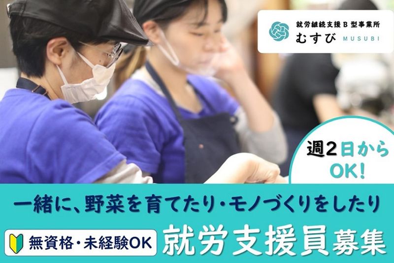 【仕事内容】 就労継続支援b型事業 就労支援サポートスタッフさん募集! 障がい者の方の「働きたい」を実現するために、料理や農作業や製品づくりなどを一緒に行うお仕事です! 「できたよ!」「楽しい!」そんな嬉しい笑顔に出会えるお仕事です。 2023年秋にオープンしたばかりの当法人運営のキャンプ場(瑞浪市)でのお仕事もあります。 ■主なお仕事 ・当事業所を利用されている障がい者の方の施設内外での作業支援(お仕事のサポート) ・作業の手順を教えてあげたり、作業をしやすいようにしてあげます(マニュアルあります) ・健康管理や困っていたら相談を聞くなども大切なお仕事です。 ・送迎(ハイエース・キャラバン/AT限定可) ●お仕事例 ・キャンプ場での清掃、準備、片付け等、運営に関わるさまざまな作業 ・鶏の世話をしたりする養鶏のお仕事 ・簡単な部品の組み立てなど行う内職 など ●未経験でも問題ありません ・はじめは先輩スタッフが丁寧に指導します ・対応マニュアルがあるので、初めてでも不安なく取り組めます ・急なお休みもフォローします。 ●事業所・法人の詳しい様子はホームページを是非ご覧ください。 ・『就労継続支援B型事業所むすび』で検索! 定員になり次第募集終了いたしますので、お問合せ・施設見学・ご応募はお早めにご連絡ください。 いきなりの面接は不安な方や、まずは施設の様子をしりたい、お話を聞いてみたいという方のお問い合わせも大歓迎です。 ご希望の方には「お試し勤務」も対応しています。 ご応募・ご連絡お待ちしております。 【求人ID-MSB02】