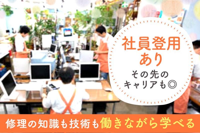 社員登用有!未経験OK◎PC修理補助!週2~の自由シフト