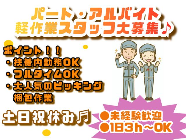 倉庫内軽作業スタッフ募集 土日祝休み! 扶養内・フルタイム大歓迎!