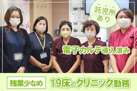 19床のクリニック勤務♪残業少なめ◆月収28万4000円・41万4000円可◎電子カルテ導入済み☆託児所あり☆マイカー通勤OK!産後パパ育休の取得実績あり◎【大和郡山市・近鉄郡山駅・クリニック・看護師・正職員】
