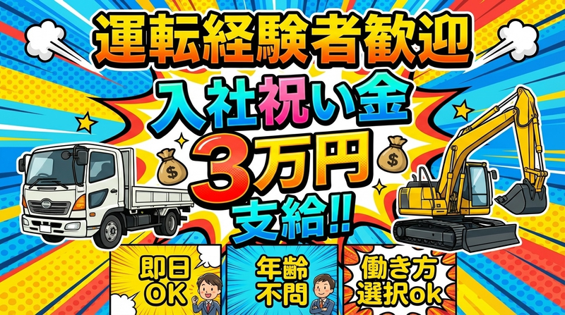 求めている人材 <必須> ✅普通自動車免許(AT限定OK) <歓迎> ・解体/土木/建築などの現場経験 ・ダンプ・トラックなどの運転経験 ・大型免許/準中型免許をお持ちの方 ※必須ではありません。 【こんな方に向いています】 ・安全運転を心がけられる方 ・体を動かす仕事が苦にならない方 ・チームで協力しながら働きたい方 ・現場での軽作業にも前向きに取り組める方 ・運転だけじゃ少し物足りない方など 普通免許があれば特別なスキルは不要。 「やってみたい」で応募OKです◎
