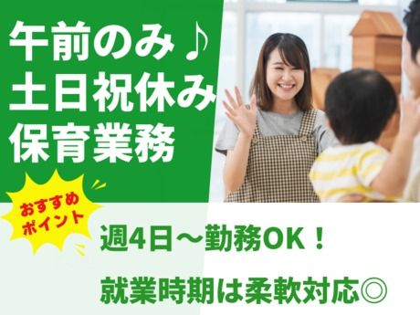 ★【午前のみ/パート保育士】午前中のみ勤務で、幼稚園のお迎えや小学生の帰宅にも対応可能◎
