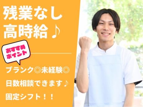 仕事内容 \ここがポイント/ ★未経験歓迎!丁寧なフォローあり◎ ★固定シフト&残業ナシで安心♪ ★日数相談OK!ムリなく働ける◎ *・。・。*・。・。*・。・。* <仕事内容> \デイサービスでの介護スタッフ♪/ ご利用者様の生活をサポートする 介護業務全般をお任せします。 ・食事や入浴の介助サポート ・トイレや移動時の見守り、補助 ・体を動かすレクリエーション実施 利用者様の笑顔や「ありがとう」が、 直接届くやりがいのあるお仕事です◎ 資格をお持ちで実務未経験の方も大歓迎! やさしい先輩がしっかりフォローします♪ 高時給だから、月22万円以上も可能! 家庭との両立もできる勤務時間固定♪ ブランク復帰・異業種からの転職も歓迎! まずはご希望の働き方をご相談ください♪ *・。・。*・。・。*・。・。*
