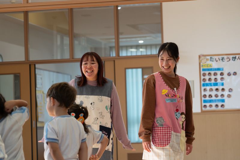 仕事内容: 子どもたちの成長を支える保育教諭のお仕事です。 一日の流れ * 0~2歳児クラス 8:00~9:00:園児受け入れ 9:00~11:00:午前活動(運動、遊び、かけっこ、おやつなど) 11:00~12:30:給食+お昼寝準備 12:30~14:30:お昼寝 14:30~16:30:午後活動(遊び、おやつなど) 16:30~18:00:降園 * 3~5歳児クラス 8:00~9:00:園児受け入れ 9:00~11:45:午前活動(YYプロジェクト、遊びなど) 11:45~12:45:給食 12:45~16:30:午後活動(遊び、個別YY活動、おやつなど) 16:30~18:00:降園 【主な仕事内容】 * 保護者とのコミュニケーションや相談業務 * 施設内の清掃や環境整備 * 子どもたちの成長に関する記録作成や報告業務 * 各種保育に関する計画作成 ・就業場所の変更:なし ・仕事内容変更範囲:なし