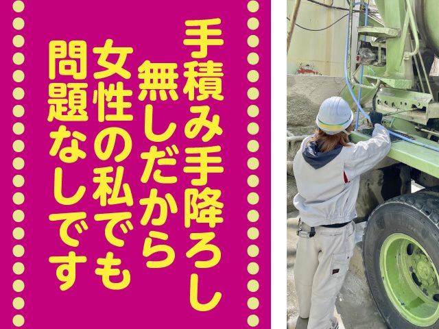 仕事内容 桑名市・四日市市内で大型ドライバー・運転手を募集します。 仕事内容 桑名市・四日市市内の地場で1日3件前後の配送です。 生コンクリートを配達していただきます。 工場から現場まで片道約30分以内でいけます。 手積み、手降ろし無し! 簡単レバー操作で荷降しできます。 \女性ドライバー活躍してます/ \定年後のシニア世代も活躍してます/ 地場配送だから夜間もなく身体への負担は少なめです。 土地勘がある方なら楽しくドライブしながら働けますね! ・勤務時間の相談OK 「フルタイムは厳しいけどお小遣い稼ぎがしたい」という方も歓迎! ・週3日~OK! 長く働ける環境作りを心掛けています。 「社員には健康であって欲しい」 そんな社長の願いから予防接種を全額負担にて受けれます(任意です) お気軽にご応募下さい! Q.ミキサー車の運転って大型免許とは別に特殊な資格がいるの? A.特殊な資格不要!大型免許があれば、学歴・経験不問です。 Q.大型免許取得後、ブランクがあるので心配ですが、大丈夫ですか? A.運転方法、生コン車レバー操作、洗車方法、軽微な車両メンテまで、 あなたが大丈夫と思えるまで横乗りし、しっかり教えます! (最長横乗り実績2ヶ月) 職場は創業57年の地元の安定企業。 桑名、四日市を中心に生コンクリートを製造出荷しております。 長年培ったノウハウがあるから、学べることがたくさん。 安定して長く働けるだけではなく、 社員一人ひとりが成長できるようサポートします! このお仕事のやりがい 建物・道路等を作る時には、必ず生コンクリートを使います。 生コンクリートを配達する事によって社会インフラや様々な建造物が出来た時には社会貢献をしている実感や、達成感が生まれます。 他の運転手さんと無線で連携をし納入するので仲間意識も生まれます。 社員の声 ・話しやすい環境と人達です。 ・品質維持の為、遠くへ運ばないので負担が少ないです。 (工場から現場まで片道約30分程度) ・横乗り研修があったので、未経験でも安心でした。 ・仕事内容がシンプルだったので、すぐに覚える事が出来ました。 ・職場の雰囲気は(2025年度12月時点) 会社全体/男性9人:女性3人 事務所内/男性5人:女性1人 少人数だからこそ、みんなで助け合って働いています。 職場見学受付中 「事前に職場の雰囲気やどんな仲間がいるか確認したい」 そんな方のために職場見学を実施しています。 気になることがあれば些細なことでもご質問くださいね! この求人のポイント 定年後の方も歓迎 週3日〜OK 手積み、手降ろし無し(簡単レバー操作) 職場見学OK 手積み、手降ろし無しだから女性の私でも問題無しです 企業ホームページ https://makinokenzai.co.jp/