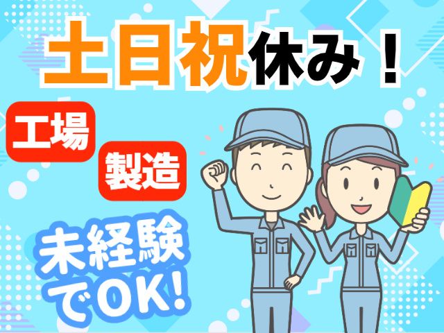 仕事内容 【月収22.4万円以上可!】 未経験OKの簡単マシンオペレーター募集! オープニングスタッフの募集なので、 スタートが一緒の方がたくさんいて安心! 【おすすめポイント】 ・日勤/土日祝休み ・高時給1,250円 ・残業少なめ ・未経験OK ・モクモク作業 ・1Rアパート、寮完備 【マシンオペレーターのお仕事内容】 小型製品の製造に関する マシンオペレーター業務をお願いします。 ・機械の決められた場所に部品をセット ↓ ・機械のボタンをポチッと押す 機械が製品を加工します。 ↓ ・完成した製品を取り出す ↓ ・製品に傷や破損・汚れがないか目視で確認 ↓ ・製品を梱包・箱詰めし、テープを貼る お昼休憩以外に午前と午後に小休憩があり、 リフレッシュしてお仕事ができます! 【未経験もOK】 作業工程はマニュアル化していますので、 製造業未経験でも始めやすいお仕事です。 また、作業に慣れるまでは先輩スタッフが 丁寧に指導しますのでご安心ください。 慣れてきたら繰り返しの単純作業なので、 モクモクと作業を進められますよ! 【日勤&残業少なめ!】 勤務時間は8:00~16:45で 朝は少し早めですがその分終業時間も早く、 終業後をプライベートに活用できます! 残業は月10時間以下と少なめのため、 ご家庭との両立もでき、無理なく働けます。 【プライベートも充実】 土日祝休みで休日の予定も立てやすく、 GW・夏季・年末年始の大型連休あり、 趣味の時間や家族・友人と過ごす時間を 大切にできます。 【空調完備の快適な工場です!】 柴田郡村田町の工場 (槻木駅から車で約12分) ・マイカー・バイク・自転車通勤OK! ・食堂あり!お弁当の用意がなくてもOK! ・休憩室、ロッカーあり ・1Rアパート、寮完備!赴任費用は会社負担 遠方からのご応募もお待ちしております! 【幅広い年代活躍中】 扱うのは小さいサイズの製品ですので、 重量物の取り扱いや力仕事はなく、 身体への負担なく働けます! 20代・30代・40代・50代の 幅広い年代の男女が活躍しています! 【製造業:こんな方におすすめ!】 ・異業種から転職したい ・工場勤務、製造業に興味がある ・土日祝は休みたい ・家事や育児と両立させたい ・高収入のお仕事を探している ・プライベートも充実させたい ・モクモク作業やルーティンワークが好き 【専任担当者がサポートいたします】 ・あなたの活躍できる職場をご紹介します! 弊社の担当者が希望や経験を伺い、 転職が決まるまで親身にサポート していきます。 ・入社後もサポートいたします! 入社後は給与などの条件面から職場環境、 人間関係まで様々なお悩みに寄り添い、 企業と交渉を進めて働きやすい 環境づくりを目指します。 【応募後の流れ】 (1)ご応募 (2)担当者より連絡 ※携帯電話から直接お電話する場合あり (3)面接方法やスケジュールの確認 面接は私服でOK! 弊社への登録がお済みでない場合は 派遣登録をご案内しております。 【WEB面接実施中!】 希望の日時で行うことが可能です! 遠方にお住まいの方も お気軽にお問い合わせください。