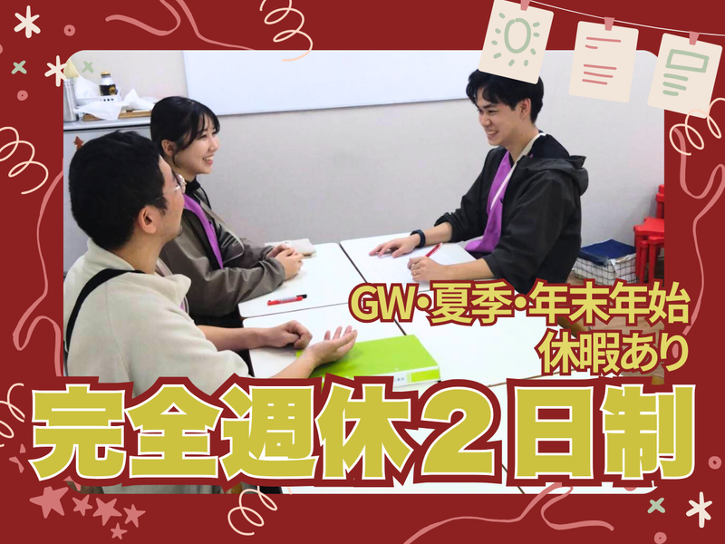 休日休暇 ✅完全週休2日制(日曜+他平日か祝日) ✅GW・夏季・年末年始休暇 ✅有給休暇
