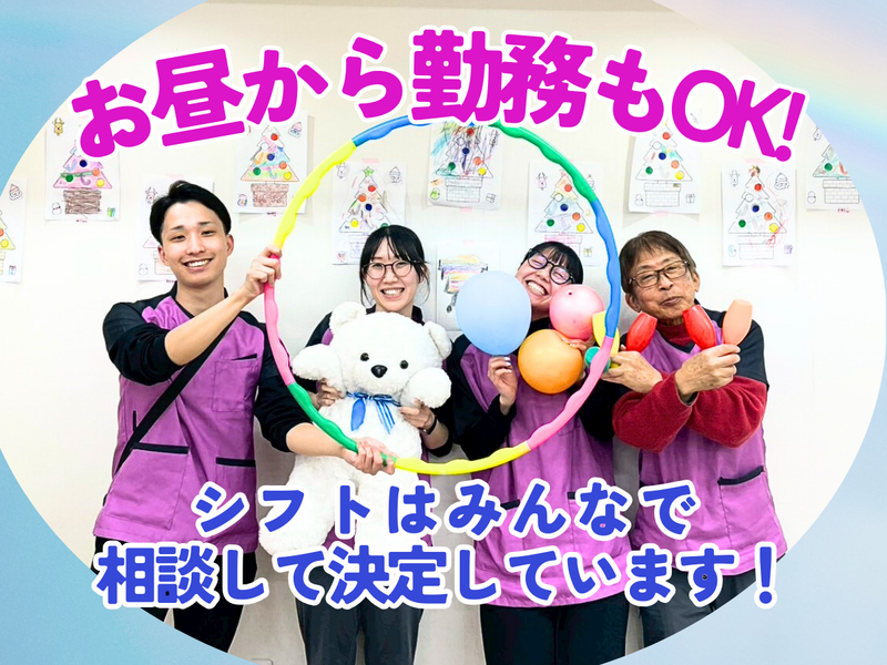 職場環境 <✨残業ほぼなし✨> 子どもたちの成長を 支援している施設です。 残業はほぼなく、終業後は スグに退勤できるので、 お子様のお迎えなども安心!