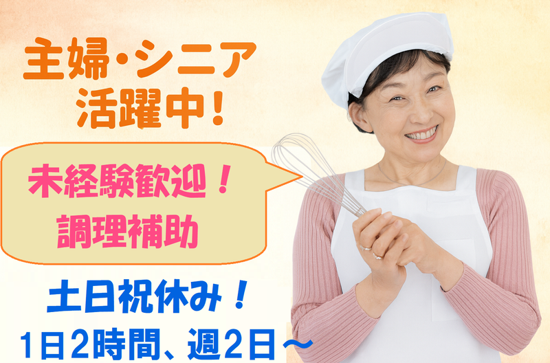 求めている人材 未経験歓迎︕ ブランクがある方大歓迎! 資格も必要ありません ●主婦(夫)さん、フリーターさん、シニア世代が幅広く活躍中。 ●「お料理が好き」「家事の合間に働きたい」そんな方にピッタリです。 ●ハローワークでお仕事をお探し中の方も歓迎。 年齢の条件と理由:あり(例外事由3号のニ・60歳以上のシニア歓迎)