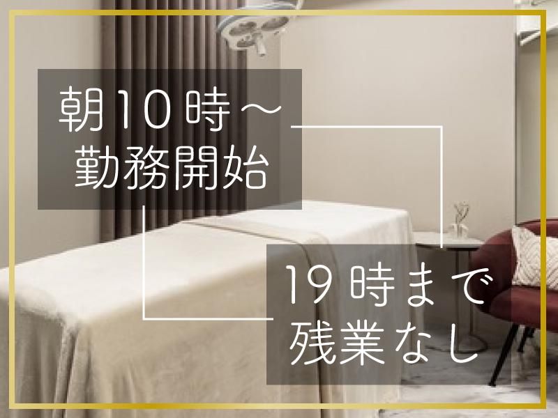 勤務時間詳細 実働時間:1日あたり8時間 平均勤務日数:1ヶ月あたり20日 <就業時間> 【月曜~日曜】10:00~19:00 (休憩1h) ・残業ほぼなし ・日勤のみ <休日・休暇> 【年間休日120日以上!】 完全週休2日制 (休診日~水曜、他シフトにて調整) 祝日がある月は振替有 ~休暇~ 夏季 年末年始 産休・育休制度 有給休暇 - 《1日の流れ例》 9:50(予約状況の確認) 10:00(午前診療開始) 13:00~14:00(休憩時間) 14:00(午後診療開始) 18:30~19:00には退社 - 綺麗な院内で働けます! 美容外科の経験や 専門知識がなくてもOK! 患者様にしっかりと寄り添うことが 大切な仕事です。 患者様のお悩みを伺い、 親身な対応を心がけましょう! 【完全週休2日制】 【年間休日120日以上】 【有休消化率100%】 【残業ほぼなし】 ~等、プライベートとの両立抜群! 産休制度や育児手当支給も 実績がありますので、 ライフイベントに左右されず、 安心してご勤務を継続できます。 -