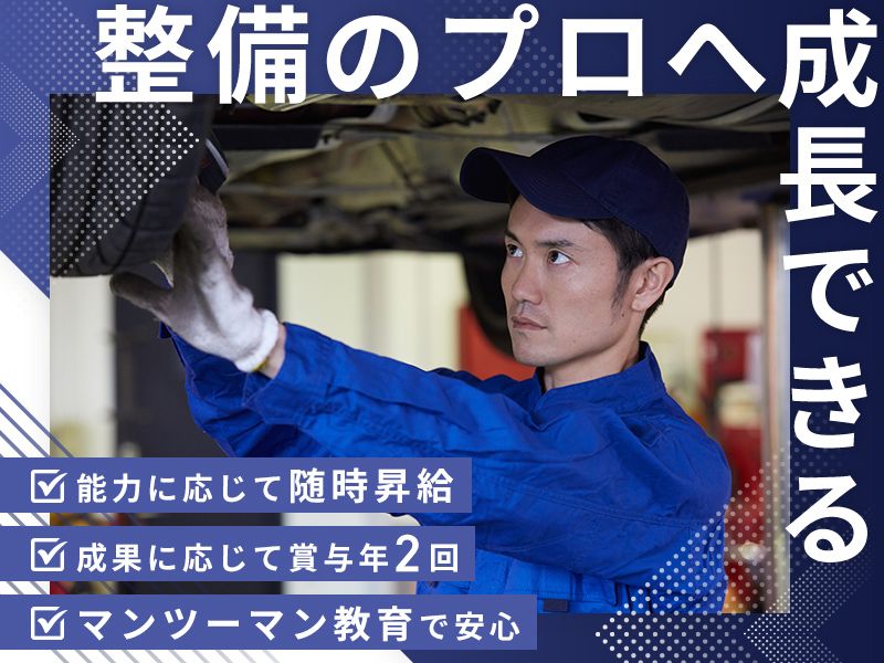仕事内容 …求人のPOINT………………………… ♢マンツーマン指導で安心 ♢年2回賞与支給+随時昇給あり ♢対応手当でさらに稼ぐチャンス ♢工場長キャリアアップも可能 ♢残業月10~20時間 …………………………………………… 【仕事内容】 自動車整備に関する 作業をお任せします。 ※例えば… ・車検対応 ・定期メンテナンス対応 ・一般整備 ・故障修理 など 【教育制度】 マンツーマンで教育するので、 未経験の方もご安心ください。 【キャリアアップ】 実力次第で、工場長などの リーダー職も目指せます。 さらに、頑張りに応じた インセンティブ制の対応手当も!