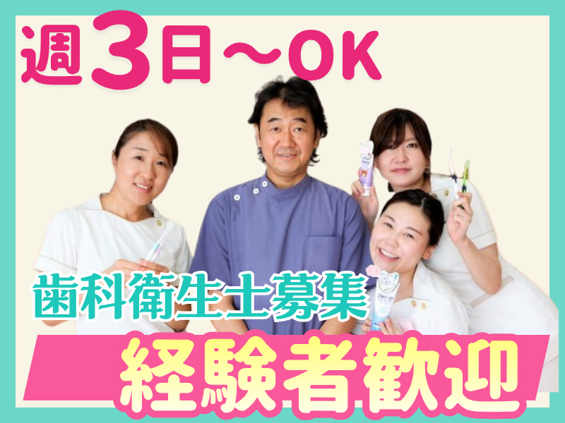 仕事内容 \ おすすめポイント / ✅お持ちの資格を活かして働ける! ✅週3日~OK!午前のみ・午後のみもOK◎ ✅20代~50代まで幅広い年代活躍中! <仕事内容> 診療補助や予防処置・保健指導をお願いします。 <具体的には…> ・歯石、歯垢の除去 ・器具などの準備、管理 ・カルテの整理 など ◎まずは簡単なことからスタート! 少しずつお仕事に慣れていけばOKです! ◎採用は経験よりも「人柄重視」。 ちょっとした気配りができる方、 患者さんへの明るい対応ができる方大歓迎! ⭐働く日数や時間はご希望を 最大限考慮します! 「フルタイムでがっつり働きたい」 「1日5時間程度で無理なく働きたい」 「家事や育児と両立できる働き方がいい」 など、あなたのご希望をお聞かせください◎ ON・OFFのメリハリをつけて働けますよ♪ ★残業時にはしっかりと手当を支給します! ★休憩中の一時帰宅もOK! <先輩スタッフの声> 先生は私たちからするとお父さんのような存在で、 気さくで話しやすく身近に感じます。 一緒に働くスタッフは私も含めて4名ですが、 居心地の良いので長く働いている人が多いですね。 困ったこと、分からないことはスグに相談できるので それが働きやすさに繋がっています!