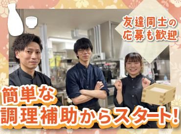 仕事内容 居酒屋のキッチンのお仕事をお任せします! 簡単な料理のお手伝いからスタートするため、 未経験さんも安心して始められますよ* 【具体的なお仕事は】 *先輩の調理業務のお手伝い *調理用具の洗浄 *食材の仕込み作業(食材の事前準備) *料理の盛り付け 上記のような簡単なお手伝いから 少しずつお任せしていきます! 最初は食材の保管場所の確認など 基本から丁寧にお教えしますので、 居酒屋&バイトデビューの方も安心* 少しずつ料理に挑戦することになっても、 先輩スタッフがサポートをしますので、 分からないことや困ったことがあれば、 いつでも気軽にご相談くださいね! 楽しく&安心して働けるよう、 しっかりとフォローします* <働きやすい!シフト自由!> お仕事は週1日~、1日3時間~OK! 学校やWワーク、家事との両立がしやすく、 学生さんやフリーターさん、主婦さんなど、 幅広い世代のスタッフさんが活躍中です! <急な出費も安心!> 基本的には毎月20日に給与をお支払いしますが、 前月の稼働分を月初にお支払いできる 「前払い制度」もご用意しています! 飲み会が立て続けで給料日まで間に合わない、、、 急に欲しい物ができてお金が必要になった。。。 などの緊急事態にも柔軟に対応できますよ!