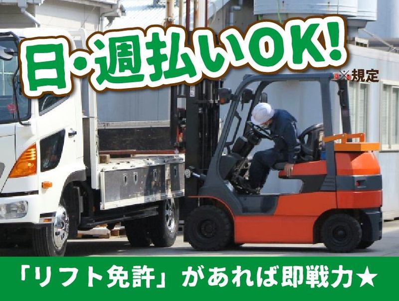 仕事内容 ★--+。--+。--+。--+。--★ リフト資格と準中型資格(MT)があればOK! 高時給でのお仕事♪ ★--+。--+。--+。--+。--★ ✨免許を活かして稼げるお仕事! ✨土日祝休み&大型連休あり! プライベートも充実できます◎ ✨正社員登用の可能性もあります! ◆:。*:。*:。**。:*。:*。:◆ < カウンターリフト作業 > 住宅用の木材や資材のピッキングや検品、 入出荷準備や積込み業務をお願いします。 ✅ピッキング作業 …紙を見ながら作業したり ハンディを使用する場合もあり ✅積込み …基本的にカウンターフォークリフトを 使用してトラックへの積込み作業 ✅一部2t車(準中型資格要)にて 配送業務あり 丁寧な研修で安心スタート!! ◆:。*:。*:。**。:*。:*。:◆ < 定着率バツグンの職場環境♪ > ⭐月収25万円以上可能! (時給1500円×1日8h×月21日) ⭐土日祝休み&夏季・年末年始休暇あり◎ プライベートの予定も立てやすい♪ ⭐職場見学OK◎ ⭐24hスマホやPCで申請OK! 日払い・週払い対応可能◎ ●===●〇●======●〇●===● 大手派遣会社ジャパン・リリーフで まずはお気軽に「登録ダケ」もOK♪ / スピード登録★最短30分で完了◎ \ Q.「スグに働く予定がないけど、 登録だけしても大丈夫なの??」 A.大丈夫です!! 登録をしておけば、「働きたい」と 思った時に即お仕事探しが可能です! / 即面接OK! \ ■電話応募・Web・出張面談も実施中◎ ●===●〇●======●〇●===●