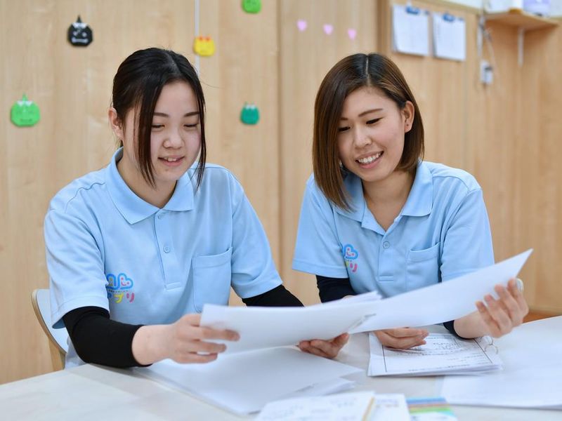 仕事内容 靴下を履く練習をしたり、宿題を見たり、 一緒に遊んだりなど、子ども達の 発達のサポート業務をお任せします! 【具体的には】 ✅一緒にお勉強やレク ✅リズム体操 ✅書類作成・データ入力 ✅施設内の装飾 ✅施設内の片付け・清掃など をお任せします。 ◎約6人のスタッフで10人程の子ども達を 見ていくので負担は少なめ! ◎各業務、他スタッフと手分けして 進めていくので、一人で責任を 負うようなことはありません! 協力していく風潮なのでご安心下さい! ✨やりがい抜群のお仕事です!✨ 上記のお仕事の他にも、 子ども達と一緒に ✅季節に合わせた貼り絵の製作 ✅母の日のための製作 を行ったり、子ども達のために ✅体操する曲のピックアップ ✅レクのための道具作成 など、様々なことを行います。 どれも子ども達に楽しんでもらうことは もちろん、親御さんにも楽しんで もらえるように考えています。 子ども達の笑顔が見えるやりがいある お仕事に挑戦しませんか? 【現在活躍中のスタッフにインタビュー!】 入社3年目の保育士として活躍中の スタッフへインタビューを行いました。 やりがいや、当社で働く魅力を深堀り! 現場で働く方のリアルな声をお届けします。 Q.入社理由を教えて下さい。 A.前職も放課後等デイサービスに勤務して おり他施設・事業所に興味がありました。 御社を見つけた時、働く職員の方々の印象が とても良かったことを覚えています。 施設内も綺麗で、子供たちの笑顔や喜ぶ姿が 目に浮かび、ここで働く自分の姿を想像 できたので入社を決めました。 Q.1日の流れを教えて下さい。 A.午前中は施設内の掃除や子供たちを迎え 入れる準備を行います。 午後になると送迎や活動・支援・片付けを 行います。 Q.どんな方が働いていますか? A.年齢層は、20代:3名、30代:1名、 40代:5名、60代:1名 幅広い世代のスタッフが活躍中という こともあり、まるで家族のような温かい 雰囲気があります。年齢や経験に関係なく 互いにサポートし合いつつ働いています。 Q.未経験入社の際に最初に任される仕事を 教えてください。 A.まず最初は子供たちを迎え入れる準備や 子供たちと遊ぶことからお任せします。 Q.仕事を覚えるまでの期間を教えて下さい A.仕事を覚えるまでの期間は人それぞれで 自分のペースで覚えていただきたいとは 思うのですが、私から言えるのは… とにかく”場数を踏んで慣れる!”です。 Q.この仕事の大変なところを教えて下さい A.交通アクセスがあまり良くない部分です。 主に自転車通勤なので夏が少し大変です。 ありがとうございました! 今回は前職での経験がある方にお話を 伺いましたが、未経験・ブランクのある方も 大歓迎! 私たちのチームの一員として、共に子供達の 笑顔を支えるお仕事を始めませんか? あなたの挑戦をお待ちしています。 不明点・疑問点があれば気軽にお問合せを。