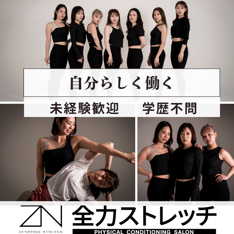 求めている人材 ・未経験者歓迎 ・経験者歓迎 ・無資格OK ・ブランクOK ・副業・WワークOK ・学歴不問 ・フリーター活躍中 ⭐「未経験でいきなり正社員は…」⭐ まずはアルバイトから始めたいという方も歓迎します。 慣れたら日数を増やしたり正社員としての勤務も可能です。 \\こんな方にオススメ// ・「美」に関わる仕事がしたい方 ・「本格ストレッチ」に関心がある方 ・コミュニケーションを取るのが好きな方 ・夢や目標がある方 ・ヨガ・ピラティスのインストラクター、パーソナルトレーナー、スポーツジム受付、ダンサー、美容部員、アパレル販売員、コンビニ店員、飲食店店員、カラオケ店員など異業種・異職種からの転職者多数在籍★ ========== <スタッフインタビュー> ▶「全力ストレッチ」で働く魅力は?  ̄ ̄ ̄ ̄ ̄ ̄ ̄ ̄ ̄ ̄ ̄ ̄ ̄ ̄ ̄ ̄ ̄ ・業界内1の高給 ・頑張りがお給料にしっかり反映される ・「元気をもらいに来たよ」「これからも体を任せたい」とお客様に言ってもらえる ・早くからキャリアアップができる ・好きなものにお金を使える (洋服・鞄・コスメ・推し活・旅行など) ・自分に自信が持てるようになる ・自分の体のケアができるようになる ・シフト自由でプライベートも充実できる ・様々な人と出会えて人脈が広がる 企業理念「スタッフの生活と心を豊かに」が体現されていて、私たち現場トレーナーを1番に大切にしてくれる会社だと日々感じています。 性別の条件と理由:女性歓迎(ポジティブアクション)