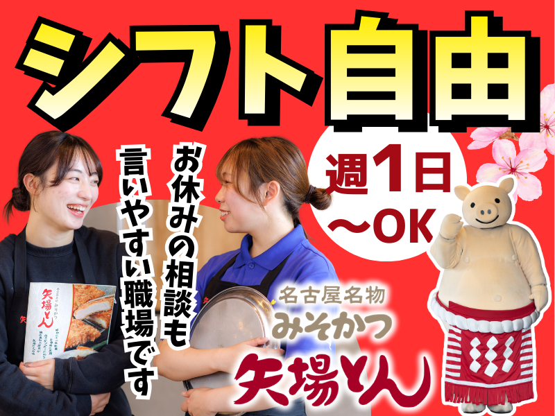 仕事内容 ✨春からのバイトデビューも全力応援✨ ✅男女学生さん活躍中! 空いている曜日で気軽にはじめて 気に入ったら 徐々にシフトを増やすのも自由♪ 出会いもいっぱい☆ バイト仲間から友達に♪ みんなで楽しく働きましょう☆ <おすすめポイント>- ⭐新大学生歓迎!学業との両立も◎ ⭐接客なし!モクモク作業♪ ⭐シフト自由!週1日・1日3時間~OK ⭐美味しい「まかない」無料 ⭐友達と一緒の応募も歓迎 - 東海エリアのお客様はもちろん 観光客の方にも大人気の有名店 「みそかつ矢場とん」で洗い場と シンプルな調理補助の募集です。 <仕事内容> ・簡単な仕込みや盛付 ・調理補助 ・洗い物、片付け ・店舗開店準備 など 食器や厨房内の機器などを洗う業務。 手が空いた場合は カンタンな盛り付けなど キッチン補助もお願いします。 <バイトデビューの方も安心> 接客はありません。 こつこつモクモク作業が得意な方歓迎! この春に入学する大学1年生も大歓迎! 大学生の先輩も多いので テストや実習など学校の予定はもちろん プライベートの予定も シフトの融通が利きやすい職場です。 年齢の近い先輩スタッフが 基礎から丁寧にお教えします。 1ヶ月ほどで慣れる方がほとんどです。 <無料のまかないあり> バラエティー豊かで栄養満点◎ みそかつの日もあり 無料で食べられるのでおトクですよ。 一人暮らしの学生さんからも 美味しいまかないが無料で お腹いっぱい食べられ 食費も浮くと大好評です。 社割もあります♪ ★先輩スタッフのコメント <大学生Hさん/20歳・女性> 最初はスポットバイトの単発でしたが スタッフのみなさんがやさしくて お店の雰囲気がとってもあったかい。 1回だけが2回になり 次も…と考えていたら 「いいじゃん、バイトしなよ」と 店長や先輩の言葉に背中を押され 矢場とんに入りました。 県外や海外からの観光客の方など 老若男女問わず様々なお客様が来店します。 お客様から「美味しい」「ごちそうさま」と 声が聞こえると、最高に嬉しいです。 <大学生Kさん/20歳・女性> お店全体に活気があり、忙しい時程 「行くぞ!行くぞ!」と声をかけあって 盛り上がっています。 みんなで一緒に盛り上げるので 応援されている様な気持ちになり 楽しく仕事ができますよ。 <本店社員Oさん/24歳・男性> 国内はもちろん、海外からのお客様も多く 観光名所みたいになることも。 お食事で旅の思い出を サポートしている気持ちになれる そんなところも矢場とんで働く 楽しみのひとつです。 矢場とんの仕事内容は 「恋する飲食業 矢場とん」で検索!