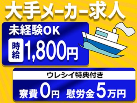 仕事内容 _/_/お仕事について_/_/ 船舶などに使われるエンジンや燃料ポンプを製造する会社で、機械オペレーターのお仕事です。 ディーゼルエンジンの組立・機械加工などをおまかせします。 フォロー体制も抜群★初めての方でもご安心ください。 あなたの適正を見て配属を決めるので、 ありのままのあなたでお仕事していただければ大丈夫♪ ー 《未経験OK!厚待遇で働ける》 ◆2工程のいずれかで決定 ◆寮費ずっと0円!時給1800円×好待遇◎ ◆慰労金5万円プレゼント ◆土日祝休で予定を立てやすい! ◆年間休日は125日★ ~~~~~~~~~~~~~~~~~~~~~ 業界トップクラスの大手企業でのオシゴト! 《具体的には…》 ディーゼルエンジン製造の2工程のいずれかに配属されます 1.組立(ライン作業) ◇各種パーツの組立 電動ドライバーでビス締め等 ◇部品又は製品の検査作業 目視や専用工具等を使用 ライン作業なので、 決められた配置で作業をいただきます 2.機械加工(オペレーター作業) ◇各種パーツを機械にセットして加工 (処理は自動加工) ◇加工済品の検査作業 ノギスやマイクロメーター等を使用 ◇部材や完成品の運搬作業等 配属先は適性を見て決定します ※滋賀県長浜市近郊で、 4か所の工場でいずれかの配属になります 分からないことはしっかりフォロー&聞きやすい環境◎ 未経験の方でも安心して成長できます! 時給はなんと1800円! 2交替制なので、深夜手当でさらに給与UP 月収31万円以上が目指せますよ★ 家具家電付きの寮完備! 驚くことに、寮費はずーっと無料☆ 初期費用もナシ、光熱費もタダでかなり節約できちゃう♪ 慰労金あり♪ 半年ごとに慰労金が5万円支給あります 好条件でしっかり稼げるおシゴト★ お問い合わせだけでも大歓迎! ぜひご連絡ください♪ _/_/ココがおすすめPOINT_/_/ - ◇未経験からチャレンジできる! ◇なんと高時給1800円!月収28万円超えもかないます♪ ◇半年ごとの慰労金5万円支給★ ◇寮費がずーっと無料の寮完備*新しい生活をはじめるチャンス☆ (いずれも規定あり) - △▼△クラブオフ制度が利用できます!△▼△ 会員限定の福利厚生サービスに加入(月額無料)! 全国の人気ホテル、有名旅館など宿泊施設から レジャー施設、ショッピング、グルメ、エステなど 各施設・サービスを特別優待価格にてご利用いただけます。 ※入社翌月1日からの加入となります _/_/特典・キャンペーン有_/_/ ★慰労金5万円(入社半年ごと/規定あり) ★寮費永年無料(寮費補助制度)