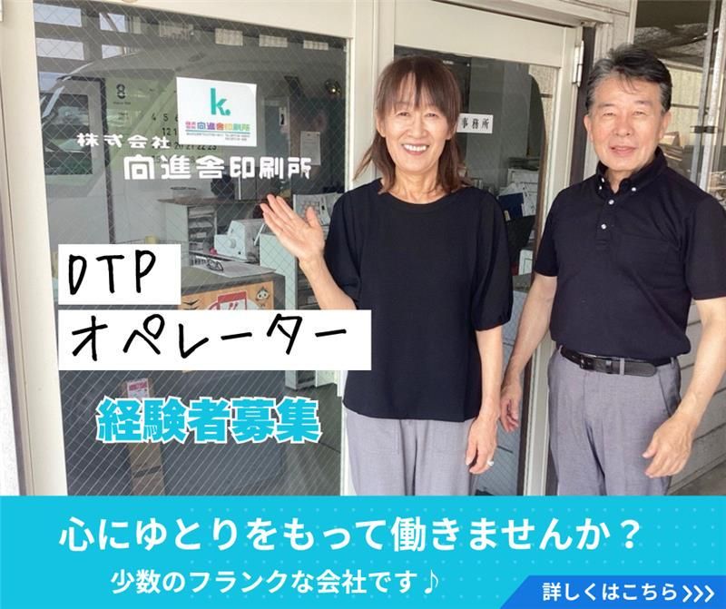 仕事内容 ╭━━━━━━━━━━━━━━━━━╮ ✅今年で71年目を迎える印刷会社 温かい雰囲気の職場環境です! ╰━v━━━━━━━━━━━━━━━╯ 私たちは、街の広報誌や企業パンフレット、 デザイン性の高いカタログなどを手がける 印刷会社です。 当社の強みは、なんといっても、 チームワークの良さと温かい職場環境。 10人以下の少人数の会社なので、 部署の垣根を越えて助け合いながら 仕事に取り組んでいます。 全員が楽しく働けるように、 代表も社員に気さくに声をかけたり、 休憩中にはアイスやお菓子を配って 回るなど、風通しの良い職場です。 ╭━━━━━━━━━━━━━╮ ✅お任せするのは、 DTPオペレーター業務です。 ╰━v━━━━━━━━━━━╯ DTPオペレーターの経験があり、 「経験を活かしたいけど、 毎日忙しく働くことに 少し疲れてしまったな…」 そんな風に感じている方もご安心ください。 厳しいノルマなどもありません。 真面目に取り組むことができれば大丈夫! ╭━━━━━━━━━━━━━━━━╮ ✅先輩DTPオペレーターが 丁寧にサポートするので安心です。 ╰━v━━━━━━━━━━━━━━╯ 4年前に入社した女性の先輩が 丁寧にサポートします。 まじめな性格なので頼りになりますよ。 仕事に関しても、高度なスキルは 求めませんので、ご安心ください。 まじめにやってくれたらOK! みなさん温厚で働きやすい職場です。 ╭━━━━━━━━━━━━╮ ✅代表からのメッセージ ╰━v━━━━━━━━━━╯ 時にはお客様が、制作している現場に 見に来られることも。ただ黙々と制作して 終わりではなく、直接「ありがとう」と 言われる機会も多いので、 やりがいも十分です。 社員同士の仲も自信を持って 良いと言えます! 社員みんなで仕上がりをチェックしたり、 喜びを分かち合ったり(笑)。 代表の私も毎日のように 社員と話す機会があり、 みんなの意見やアイデアには 必ず耳を傾けるようにしています。 私を含めて全社員で一つの印刷物を 仕上げていく意識をもっているので、 チームワークもバッチリ。 おかげで残業もほとんどありません! 常に気を張って働くのは、 やはり疲れてしまいますよね? 心にゆとりを持ち、 楽しみながら働いてみませんか? 文章だけではなかなか伝わらないので 応募前に一度見学に来ませんか? きっと会社の雰囲気が伝わると思います! あなたからのご連絡をお待ちしています。 <仕事内容> 広報誌、カタログ、ポスター、 パンフレット、各種販促ツールの 制作・校正業務など。