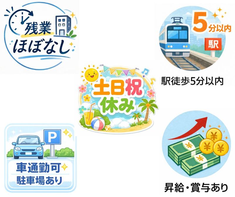 時間・勤務日詳細 変形労働時間制(1年単位) 8:00~17:00 ・休憩90分 ・実働7時間30分 ◎残業なし ※平均所定労働時間(月)165時間