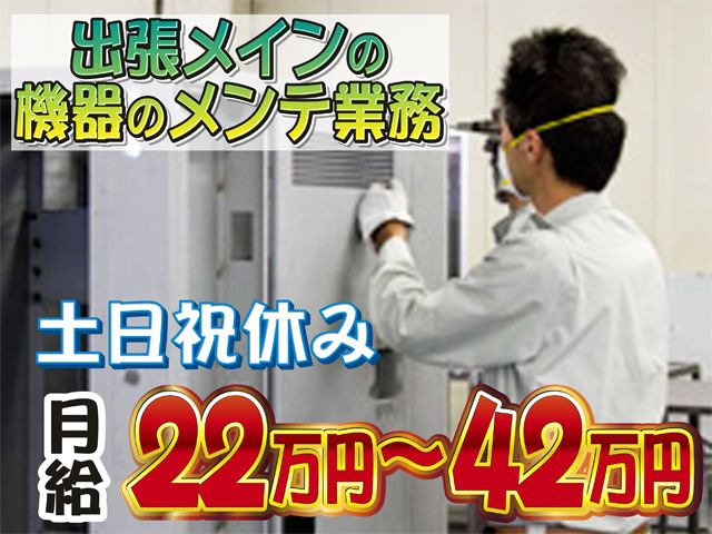 勤務時間 8:30~17:30(休憩60分) ※月10時間程度残業有 休日の修理対応あり(休日手当あり) 年に2回程度の頻度です (事前連絡がありますのでプライベートへの影響は最小限です)
