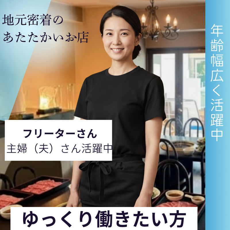仕事内容 ╭━━━━━━━━━━━━╮ ⭐地元密着のあたたかいお店 負担少なめの飲食店ホールスタッフ ╰━━━v━━━━━━━━╯ ✨週3日~勤務OK!曜日・時間相談可 ✨飲食店・接客未経験も大歓迎! ✨お昼は11:00~14:00までの主婦(夫)さん活躍中! ✨Wワークや副業と両立しているフリーターさん活躍中 ✨年末年始出れる方優遇 ┈┈┈┈┈┈┈୨୧┈┈┈┈┈┈┈ 当店は、地元の常連さんが多く、アットホームで落ち着いた雰囲気が自慢のお店です。 「地元で無理なく、ゆっくり働きたい」 「安定性よりも負担の少なさを重視したい」 【具体的な仕事内容】 〇お客様のご案内 〇料理やドリンクの提供 〇テーブル片付けやセット 〇お会計 ■タブレット注文なのでオーダー伺いはありません! ■常連様が多いお店なので、ばたばた慌ただしい感じもなし! ■飲食業未経験もOK♪ ■ホールの専属勤務ですが、希望があればキッチンもお任せします◎ ⏩11時から14時のランチタイムは子供へ【いってらっしゃい!おかえりなさい!】が言える時間帯♪ ⏩週3日で短い時間で少しでも働きたい方やWワークで夕方まで働きたい方など両立できます! ⏩扶養内勤務もOK!地元で働きたい方!車通勤や自転車通勤OK!