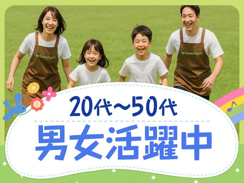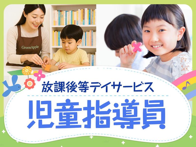 仕事内容 放課後等デイサービス<児童指導員> ✅週2日~OK!プライベートも充実 ✅楽しくやりがいのあるお仕事 ✅20~60代の男女多数活躍中! 【お仕事内容】 障害のある小学校1年生~高校3年生までの お子様をお預かりし、指導員業務全般をお任せします。 ・学習サポート ・創作活動、調理、課外活動サポート など お子様一人ひとりのペースに合わせて、 成長を支援するお仕事です! 「できなかったことができるようになる瞬間」 に立ち会うことができるのが、この仕事の最大の魅力です。 子どもたちと真摯に向き合ってくれる方を募集します! \✨GreenAppleの魅力✨/ ◆子どもたちの成長を見守りながら、 自分も成長できるお仕事です。 ◆チームワーク抜群! スタッフ同士のコミュニケーションを 密にとることを心掛けています。 風通しが良く、協力し合って働ける環境です。 ◆保育士や児童指導員の資格をお持ちの方、 これから取得を目指している方、 そして将来子どもたちと関わる仕事をしたいと考えている方にぴったり◎ ─[先輩スタッフの声]──────── ⭐「子どもたちと同じ目線で楽しむことができるのが 一番の魅力!時にはお兄ちゃん、時には先生として、 オンとオフをうまく切り替えながら働いています!」 ⭐「スタッフ間のコミュニケーションが円滑で、 みんなが仲良く、協力し合いながら働ける環境です。 お互いを尊重し合う風通しの良い職場です!」 ──────────────────── 【⏰1日の流れ】 <平日>14:00~17:30 14:00~ はじめの会 (スケジュールと係の仕事を発表) ▼ 14:15~ 学習タイム ▼ 15:00~16:00 プログラム (工作、体操、レクリエーションなど) ▼ 16:00~16:30 おやつタイム (買い物学習も!) ▼ 16:00~16:30 自由遊び ▼ 17:00~ お掃除タイム ▼ 17:15~ Growing Program (成長プログラムを通じて、お子様の気づきをサポート) ▼ 17:30~ 送迎