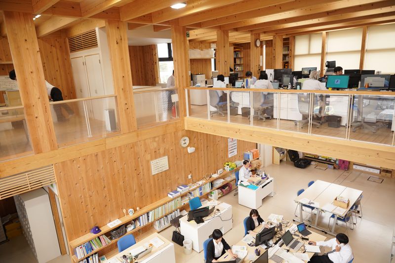職場環境 【勤務地富岡本社につきまして】 オフィスフロアは天井が吹き抜けで広々とした空間です。 開放的な空間でのびのびと勤務いただけます。 喫煙所:喫煙所あり(屋外)
