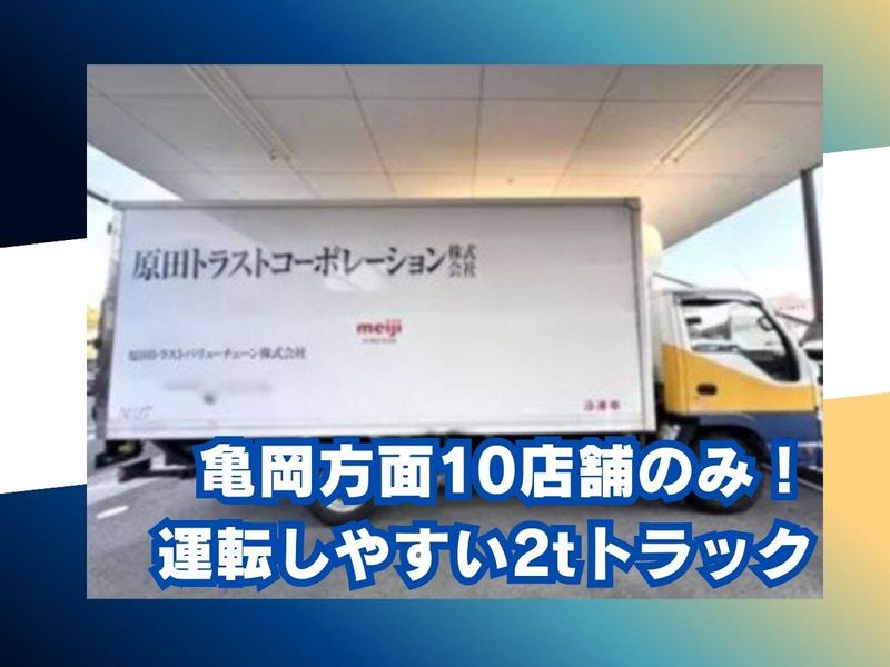 仕事内容 ⭐ここが「応募」の決め手! ✅高収入を約束します! 日曜1日(実働8時間)で日給1万3300円! 月4回勤務で5万3200円の副収入! ✅日曜日のみの勤務! 平日のお仕事や予定に影響なし。 副業・Wワークに最適です◎ ✅亀岡方面のみの固定ルート! 向日市の営業所を出発し、 亀岡方面のスーパーを回る固定ルート! 道さえ覚えれば安心です◎ ✅力仕事ほぼなし!「運ぶ」より「転がす」! 納品は台車ごと冷蔵庫へ! 体への負担が少ないシンプル作業です。 ✅残業ほぼゼロを徹底! 自分のペースで働けて、 サクッと終了・帰宅できます! ✅運転中は一人の時間! ラジオや音楽を自由に楽しめます◎ 気楽に働ける環境です。 ――地域に根差して72年。 「明治乳業」販売で京都最大級の安定企業―― 当社は創業72年にわたり、 京都の皆様の食生活を支えてきた 明治乳業の販売会社です! 景気に左右されにくい乳製品・チルド製品の 安定配送を担っています。 今回は、京都亀岡方面のチェーンスーパーへ 固定ルートで置き回り配送を担当していただく <日曜限定>のアルバイトドライバー募集! 【仕事内容】 お任せするのは、2tトラックでの明治乳業の 乳製品・チルド製品のルート配送です。 配送エリアは京都市内の チェーンスーパー(約10店舗)のみ! 積載量は通常300kg~1000kgです! ほぼ固定のため道をすぐに覚えられます◎ 【これが負担軽減のポイント!】 ✅納品は台車ごと! 重い荷物を手で運ぶ作業はほとんどありません。 台車ごと冷蔵庫に納品するため、 体力的な負担が少ない仕事です。 ✅シンプルな作業! 出勤→商品のピッキング・仕分け→積み込み →配送(台車で納品)→帰社の流れです。 コツコツ作業が得意な方に最適です。 ✅2tトラック使用! 運転しやすいサイズのトラックです。 ✅ストレスフリーな運転! 3時スタートなので、出発時の道はガラガラ。 渋滞のイライラとは無縁です! 【やりがい・魅力】 ✨自由度高め! 運転中はプライベート空間!服装も自由です。 自分のスタイルで、気楽に働けます。 ✨短期での勤務もOK! まずはお試しで働いてみたり、 短期から長期への切り替えも可能! お気軽にご相談ください◎ ✨長期安定!創業72年の安定企業! 長く働きたい方も歓迎します。 正社員登用制度もあり、 キャリアアップを目指すことも可能です。