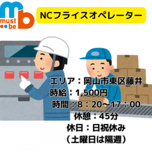 インフォメーション 【日払い・週払いOK】未経験の方、活躍中 【ビデオ通話での簡単登録始めました】 「must be (マストビー)だからこそ」 お仕事のご紹介特典いろいろ ・子育て主婦(夫)さんや自営業や シフトワーク、 Wワーク希望の方にもマッチした 勤務形態をご紹介。 ・フルタイム、パートタイム、時短勤務など のいろんな働き方の方々を応援! ・日払い、週払いOK!急な出費にも安心の お給与体制があります。(規定あり) ・来社は不要!出張登録OK! あなたのお住まいのお近くのカフェや 喫茶店で登録手続きができます♪ ・学歴不問、あなたのやる気を応援、 お仕事紹介でサポートいたします! ・学生さん、主婦(夫)さんから、 バリバリ稼ぎたい方、 まだまだ働き盛りの50代の方まで、 幅広い年齢層の方々が絶賛活躍中! アピールポイント ビデオ通話での簡単登録可能 must be(マストビー)では多種多様な職種を 取り揃えています。 どんな仕事を探しているかお気軽に お問合せ下さい! 1月は採用強化中! 1月中に応募いただいて 「1月中のスピード入社」はもちろん, 2月以降入社も随時相談承ります!
