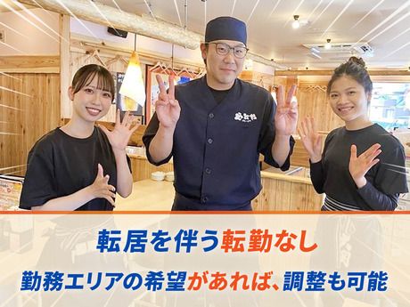 仕事内容 \東証プライム上場グループ安定企業で、正社員になろう!入社祝金最大60万円!/ 《未経験から短期間で寿司職人を目指せます!》 寿司居酒屋「や台ずし」で寿司の握りや調理、接客・ホール業務などをお任せします。 未経験の方は盛り付けや調理補助など簡単なキッチン業務からお任せします! 飲食店でキッチンの経験がある場合は、最短2~3ヶ月でお寿司が提供できるようになります。 【大手ならではの働きやすさ・福利厚生】 ・業界トップクラスの入社祝金最大60万円(当社規定) ・食事補助あり 1勤務につき1食無料 ・社割あり 会計から20%オフ(本人がいれば友人・家族も対象) ・稼働分の50%を前払いする「前給制度」あり ・賞与年3回!実績賞与、精勤賞与などで積極的に還元 ・動画マニュアル完備 教育体制が整っているので安心 ・原則転居を伴う転勤なし!勤務エリア希望があれば、調整も可能 ★自己申請昇格精度あり!年数回の昇格・昇給も可能! 出店店舗も増加中のため、昇格もしやすい環境です。 中期目標として500店舗の展開を目指しています。 【や台やグループ】 東北から九州にかけて居酒屋チェーン「や台やグループ」を展開するヨシックスフーズ。 「元気を持って帰ってもらう店なんやで」を基本理念に、なぜだが懐かしくあたたかい、屋台のような空間を提供しています。 常連のお客様から休日にはお子様連れのファミリー層など、幅広い客層から愛されているお店です。 現在(2025年4月時点)、全国で約370店舗を展開。 安定性と成長スピードの、どちらも兼ね備えた当社で一緒に成長しましょう!