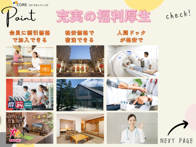 選考プロセス <複数名採用・スピード入社> ①応 募 ②書類選考 ③会社説明会&WEB面接/1回 ※カジュアル面談 ※履歴書不要 ④最終面接 ※来社またはWEBどちらも対応可 ⑤内 定 ※ご応募から内定までは、最短1週間程度を予定しております ※面接日時・入社日は相談OK。お気軽にご応募ください ※選考フローは変更となる場合がございます <応募後の連絡> ご応募から30分以内にメールとSMSをお送りします URLより「面接希望日の入力」をお願い致します