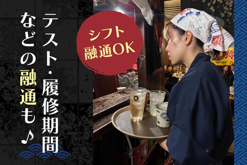 求めている人材 **\\ 未経験の方歓迎 //** ⭐新大学1年生の学生さん大歓迎 ⭐フリーターさん・主婦(夫)さんも大歓迎 ⭐経験者は給与優遇 ⭐終電後~2時まで働ける方優遇 ⭐金・土どちらか勤務できる方歓迎 ※ 必須 ※ ●日常的に漢字に触れる環境に抵抗がない方 L日本酒は銘柄名などに、 漢字がたくさん使われています。 日本語検定1級レベルの スキルがある方を歓迎します。 ▼ こんな方にピッタリ ▼ ・新生活に新しいことにチャレンジしたい ・学業とバイトを両立したい ・私生活も大切にしながら働きたい ・Wワークなどと両立したい ・空いた時間にサクッと稼ぎたい ・楽しく働ける職場を探している ・人と話すことが好き 新生活と、アルバイトの両立が できるように先輩スタッフが しっかりサポートしてくれます! <先輩スタッフAさん> 僕も、大学1年のときに この店で未経験からアルバイト を始めました。 初めは、授業との両立ができるか 不安でしたが、先輩スタッフが 仕事もプライベートもサポート してくれたので助かりました! 今度は、僕たちがサポートするので 安心してくださいね! スピード採用実施中!すぐに勤務できます◎