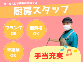 メッセージ 私たちが目指す目標像は、 「高齢者が大切にされ、尊敬される。 そんな日本社会をつくる!」です。 未来のあるべき姿の介護をつくる。 そんな心意気の方と働きたいと考えています。 ・各種手当あり! ・土日祝日に勤務できる方は尚歓迎! ・・・・・・・・・・・・・・・・・・・ 「おいしいね!」が最高のやりがいです 毎日の食事でみんなの笑顔が引き出せます♪ ★早番・遅番・日曜日出勤手当あり◎ ★毎年入社記念祝金5000円支給 ★会社負担で医療保険加入 週1日勤務(日曜日)の募集!未経験歓迎!各種手当充実♪難しい作業はナシ!簡単な厨房業務をお任せします! 介護・福祉事業