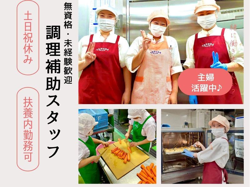 仕事内容 ✨平日のみ!短時間で 家庭や子育てと両立可能! ✨扶養内勤務OK! 未経験大歓迎のお仕事です! 小学校で給食づくりの サポートをお願いします。 仕事内容はとってもシンプルで、 家事の延長線でできる作業が中心です♪ ✅食材のカットや盛り付け ✅配缶 クラスごとの食数に合わせて配る ✅料理の運搬 決まった場所まで台車で移動 ✅食器洗い 食洗機使用で簡単! すべてルーティン業務なので、 一度覚えてしまえばとってもスムーズ♪ 調理師や栄養士の指示があるので 安心して作業ができます。 【この職場の魅力✨】 ✅残業なし!定時でピタッと帰れる♪ ✅土日祝はお休み♪ ✅栄養バランスを考えた昼食が 1食200円で食べられる! ✅調理師免許を 「全額会社負担」で取得可能 昨年度は約20名が取得して キャリアアップしています! 【こんな方にぴったり】 ✅子どもの行事や急な体調不良に 柔軟な職場がいい ✅未経験から安心して始められる 仕事を探している ✅ブランクがあっても温かい環境で働きたい ✅資格がなくても料理に関わる仕事をしたい ✅栄養バランスや食生活に興味がある 【スタッフインタビュー】 ◆40代 主婦スタッフ Mさん 子どもが小学校に入学したタイミングで、 仕事復帰を考えていた私。 前職は販売職だったため、 平日の昼間だけ働ける場所を探していました。 こちらの職場は"平日のみ"で働けて、 しかも家から近く 家庭との両立ができるのが魅力でした✨ 未経験でのスタートでしたが、 先輩たちは本当に優しくて すぐに職場に馴染むことができました! 料理のバリエーションも増え、 家でも子どもに喜ばれる メニューが増えました。 「家族との時間」も「自分の時間」も 大切にしたい方に ぴったりな職場だと思います♪ <安田物産について> 1955年に創業し、長年にわたり 地域の“食”を支えてきた企業です。 保育園・学校・介護施設などへ 給食や仕出し弁当を提供しており、 神奈川を中心に160拠点以上の 契約実績を誇ります。 地元農家と連携した地産地消や 酒造の米粉活用など、 環境と食育に配慮した 取り組みも推進中。 直近10年は業績右肩上がりで 安定感抜群!