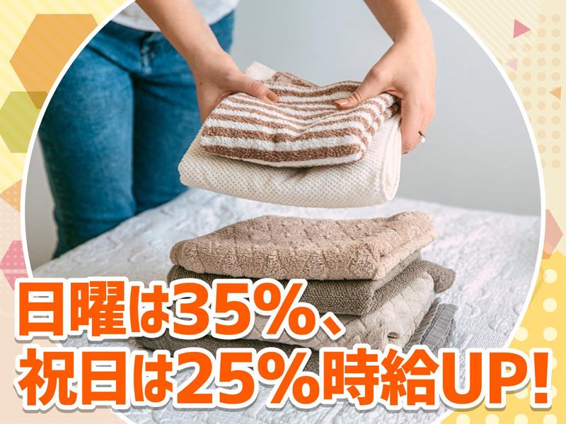 仕事内容 ✅終了時間相談可能! ✅【シフト例】8:30~15:00 病院内でベットメイキングをしたり、 寝具・リネン類を納品・回収・管理するお仕事です! 清掃・ベットメイキング等の経験が活かせます。 歩くのが好きな方や体を動かすことが好きな方、大歓迎です! <このお仕事のメリット> 景気に左右されない、コロナ禍でも安定していた職場です。 【未経験者も歓迎!】 ほとんどの方が未経験スタート! あなたの不安もみんな経験済なので心強いですよ◎ お仕事内容は研修でイチからしっかりお教えします! 研修後は先輩のサポートも有! 20代から50代まで、幅広い世代の方が活躍しています。 ペアでする仕事もあれば(頼れる先輩が助けてくれます!)、 一人でモクモクとする仕事もあります。 業務に飽きる事無く働いて頂けます◎ 【職場見学も大歓迎です】 新しい環境への挑戦は緊張すると思います! 入社前に実際の現場を見学頂く事も可能です◎ お気軽にお問い合わせください。