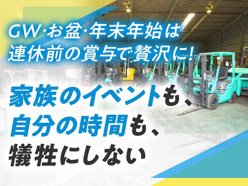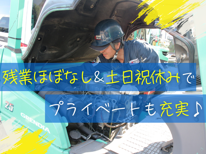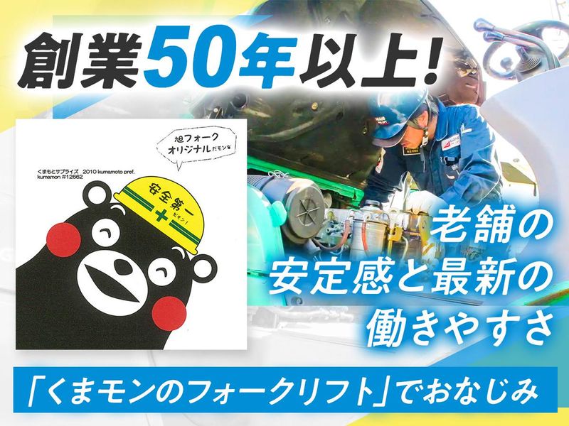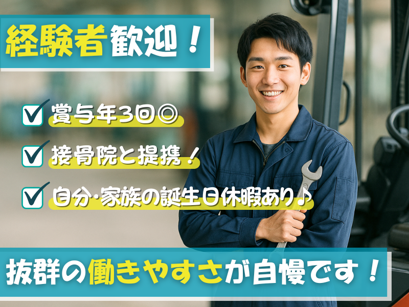 仕事内容 【くまモンのフォークリフト】で おなじみの旭フォークリフトは… \ホワイトマーク企業認定を目指して/ ✨土日祝休み&各種連休完備! ✨誕生日など年5回の特別休暇 ✨残業少&男性育休(1年)実績 ✨賞与年3回+年7%昇給実績 ✨住宅手当や退職金制度あり ✨充実したスキルアップ支援 ほか月1回の接骨院訪問治療、 食事補助、配偶者健康診断補助、 海外への社員旅行、懇親会や 家族参加OKのイベントなど… とにかく《働きやすさに全力》です⭐ ◆県内で年間9社のみ受賞の 「神奈川がんばる企業エース」選出◆ <主な仕事内容> ・フォークリフトの点検、整備、修理業務 ・1日平均5件程度、サービスカーでお客様先へ訪問 ・対応エリア:神奈川、東京、千葉、埼玉 ━━━━━━━━━━━━━━━━━ ★賞与年3回 & 昇給率最大7%★ 連休前のボーナスは 「家族との思い出代」になる ━━━━━━━━━━━━━━━━━ GW、お盆、年末年始。大型連休の 「直前」に賞与が振り込まれる快感、 ぜひ味わってください。 昇給率実績も 最大7%。「なんとなく」ではなく、 あなたの技術を「金額」で明確に評価します! ━━━━━━━━━━━━━━━━━ ★接骨院費用補助&社内出張施術★ クルマを大事に整備するように 社員&ご家族の健康をケア ━━━━━━━━━━━━━━━━━ 「腰痛は職業病」と諦めていませんか? 良い仕事は、万全な身体から。当社では 提携接骨院の費用は会社が半額持ちます。 さらに月1回、プロの先生を社内に呼んで 施術を実施。配偶者健康診断費補助など、 "社員想い"を福利厚生に反映しています! ◎資格取得支援あり◎ 研修や講習会への参加も積極サポート。 資格取得費用は全額会社負担するなど、 あなたの成長を後押ししていきます。 ================= ✨簡単1分!履歴書は応募後でOK✨ 少しでも気になった方は… 【応募画面へ進む】ボタンをタップ! =================
