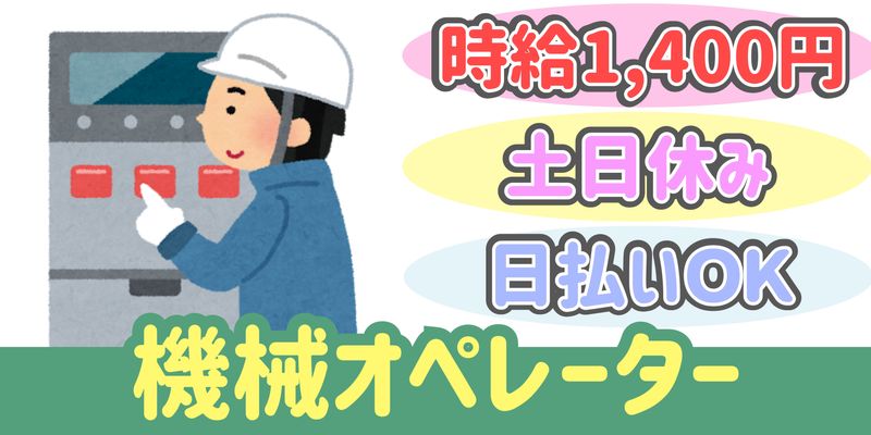 仕事内容 チェーンを製造する企業での機械オペレーターのオシゴト ・製造や組み立て ・圧縮やカット作業 ~など 未経験から高収入を目指せます 出張面接いたします!就業前の職場見学OK! お気軽にご応募ください! 18歳~40代後半の男性活躍中 ・就業場所は、熊谷市立吉見小学校 近郊 オススメpoint ・人気の土日休み ・制服はうれしい貸与 ・仕出し弁当(370円)の注文可 もちろん持参もOK ・ロッカー完備 ・駐車場あり マイカー通勤OK ・未経験者OK ・土日休みご希望の方 ・長期のお仕事お探しの方 ・高時給でシッカリ稼ぎたい方 ・二交替&深夜割増手当ありで効率よく働きたい方 ・残業少なめでプライベートも大事にしたい方 ・1月あたりの平均残業時間10h 【こんな経験活かせます!】 パート、アルバイト、契約社員 雇用形態問わず、下記の経験ある方は活かせます! ・工場 ・製造 ・加工 ・組立て ・マシンオペレーター ・機械操作 ・ボタン押し ※もちろん必須ではありません! まずはお気軽にご応募ください ///////////////////////////////////////// (WEBでご応募の場合) お電話番号を記入していただくと ご案内がスムーズです。 /////////////////////////////////////////