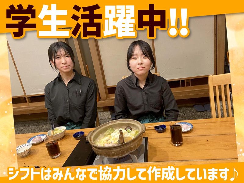 時給1,150円~1,200円 給与詳細 基本給:時給 1150円 〜 1200円 【給与例】 給与例 時給1150円、週3日、1日5時間で勤務。 月々6万9000円の収入。(月4週換算) <スタッフAちゃんの働き方> 授業が少ない週はしっかり入っています。 とにかく、オーナーが作って下さるまかないが本当においしいんです。 一人暮らしをしているのですが、お魚を料理するのってあんまりしなくって・・・(笑) でも、バイトの時においしいのが食べられるので、 本当に助かってるんです!もちろんお肉もぜーんぶおいしい! お刺身は、もうそこらへんで売ってるのは食べられないって程、まかないのがおいしいです! シフトもみんなで協力して決めています! 「テスト週間だから協力しよう」「今週の土曜日は休みたいから、来週は出ます!」など 年代が近いから相談もしやすい! 飲食店未経験や初アルバイトからスタートしたスタッフも多いので、 しっかりフォローします!安心してご応募してください♪