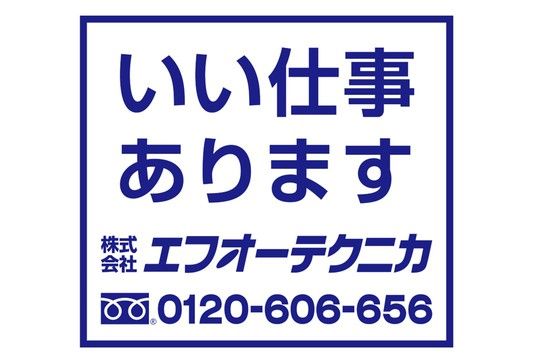 ■応募後の流れ //////////////////////////////////////////////////////////////////////////// <応募・お問い合わせ> ①「応募ページへ進む」からエントリー下さい。 ※メールでの応募・電話での応募先があります。 ②この画面から、直接お電話でのお問い合わせ ※0985-72-7503又は 0120-606-656よりお問い合わせ下さい。 ※受付時間・・・8時30~17時00 当社ホームページにも求人掲載をしています。 是非ご覧下さい。 http://www.fo-technica.com/jobs/ //////////////////////////////////////////////////////////////////////////// 1.24時間以内に担当者からお電話またはメール致します。 ※土・日・祝のご応募の際は、月曜日にご連絡させて頂く場合があります。 2.面接及び勤務地の見学 3.採用可否の連絡 2日以内 4.入社手続き及び受入教育 5.入社(ご希望日又は就業先リクエストで対応) ■応募受付電話番号 0120-606-656 ※電話番号に関する補足: 8:00~17:00 ■個人情報の取扱いについて ご提供いただいた個人情報は、採用選考及び結果等の通知・連絡の為に利用いたします。 それ以外の利用目的または法令等に基づく要請の範囲を超えた利用はいたしません。