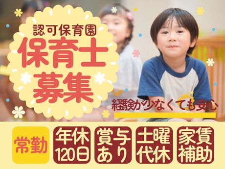 仕事内容 就業先施設について ━━━━━━━━━━ 定員100名認可保育園 ━━━━━━━━━━ 2023年4月開園のきれいな保育園です。 法人独自のプログラムを導入しており、読み・書き・計算・体操・音楽を楽しめる子どもに育てることをテーマにしています。 当園では、社風でもある”ほめる”ことを大切にしながら、子どもたちのやる気スイッチONに繋がる保育を行っています。 <通勤方法・その他補足> ※自転車通勤OK!駐輪場あり <受動喫煙対策> あり(屋内禁煙) ■受動喫煙対策に関する特記事項 屋外に喫煙スペース設置予定 <新型コロナウイルス感染防止対策実施> スタッフの健康と安全を第一に考え、安心して働ける環境づくりに取り組んでいます。 ■スタッフの出勤前の検温、体調管理の徹底 ■手洗いうがい、手指消毒の徹底 ■事業所内の消毒、換気の徹底 ■研修のオンライン化 仕事内容 ■認可保育施設における保育業務全般 ※近くには公園がたくさんあります。近隣を散策したり、公園で遊んだりと園外保育が楽しめます ※菜園活動をし、収穫した野菜を調理して給食で食べます。食育活動を通して食べることの大切さを学びます ※お子様への健康面を重視し、常勤の看護師を配置。様々な相談に対応しています <主な業務> ・健康管理 ・身の回りのお世話 ・イベントや行事の企画と運営 ・保護者とのコミュニケーション ・日誌や指導計画作成 等 ━━━━━━━ 園の1日の流れ ━━━━━━━ ※1~2歳児の場合 【登園】 視診・検温 【午前】 ■朝の会・トイレ■おやつ■お散歩・室内遊び■給食 ■トイレ・お着替え■絵本 【午後】 ■お昼寝・検温■お着替え・トイレ■おやつ■帰りの会 ■室内遊び・お散歩■合同保育(世代間交流) 【降園】 ■延長保育 ※おむつ交換3~4回 - ※3~5歳児の場合 【登園】 視診・検温 【午前】 ■朝の会・トイレ■音楽■運動遊び■読み/書き■給食 ■トイレ・お着替え■絵本 【午後】 ■お昼寝(3歳児のみ)・検温■お着替え・トイレ■おやつ ■帰りの会■室内遊び・お散歩■合同保育(世代間交流) 【降園】 ■延長保育 ここがポイント♪ ━━━━━━━━━━━ 正社員(常勤)募集 ━━━━━━━━━━━ ■認可保育園で働く保育士(保育職員)さん募集♪ ■保育士の資格をお持ちの方を募集しています ■入職後は、紹介先施設の正規雇用(正社員)としての勤務となります ━━━━━━━━━━━━ 土曜出勤の代休とれます♪ ━━━━━━━━━━━━ \ワークライフバランスを大切にできる環境/ ■年間休日120日以上 ■週休2日シフト制 ■日祝+その他週1日 ■土曜出勤は、月1~2回程度!出勤した場合は、平日に振り替えが可能です ━━━━━━━━━━ キャリアアップ応援♪ ━━━━━━━━━━ キャリア支援制度あり! 働きながらキャリアアップできる環境です。 特定の資格を取得する費用を会社が補助します。 最大6万6000円の家賃補助あり ━━━━━━━━━━━ 職員の生活を支えます♪ ━━━━━━━━━━━ 転職後の生活が不安。パートの方も家賃補助があるので安心。 家賃補助は、大阪市の「保育士借り上げ社宅制度」を利用します。 条件に該当した方に支給となります。 求職者様の手数料・費用負担ゼロ!応募から就業開始まで、あなたの転職をサポートします♪ ━━━━━━━━━━ 有料職業紹介について ━━━━━━━━━━ 有料職業紹介とは、人材を必要とする企業様から求人依頼を受け、紹介会社がその企業に見合った求職者様をご紹介するサービスです。 「有料」と聞くと、「応募したらお金がかかる」と思っていませんか?それは間違いです! 求職者様には紹介手数料や費用など、料金は一切発生しませんので、どうぞ安心してご応募ください。 ━━━━━━━━━━━━━━ 他にもいろんなお仕事をご用意♪ ━━━━━━━━━━━━━━ ■未経験OKのお仕事 ■平日のみ・土日祝休みや長期休暇ありのお仕事 ■高収入・高時給のお仕事 ■日勤のみのお仕事 ■短時間・時短のお仕事 ■夜間・深夜・夜勤専従のお仕事 ■残業なし・学歴不問・正社員登用・急募のお仕事 ■主婦・主夫が活躍できるお仕事 ■子育てと両立できるお仕事 ■60歳以上のシニアさん歓迎のお仕事 など