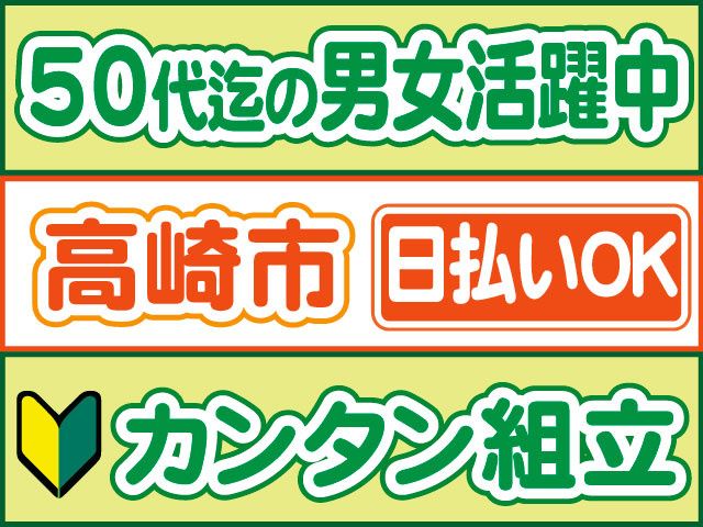 仕事内容 初心者さんも歓迎のカンタン組立 先輩スタッフの丁寧指導で安心スタート 50代の中高年の方も活躍中 【組立のポイント】 〇未経験OK 〇日勤のみ 〇高時給1550円~ 〇週休二日制 〇空調完備で年中快適 〇20代30代40代50代の男女活躍中 〇日払いOK(規定内) 〇交通費支給(規定内) 〇履歴書不要 〇「マイリク定着支援」導入企業! 【組立の仕事内容】 高崎市にある自動車部品製造工場でのお仕事 具体的には、 自動車のオプション部品を、 (カーナビ、エアロパーツなど) 説明書に従って正確に 組立・取付していただきます。 職場見学(30分~1時間程度)を実施しております。 実際に作業内容を見てから決めていただけます! 【勤務について】 〇日勤のみ ※8:30 ~ 17:00(実働7.5時間) 〇週休2日のシフト制 急な発熱・体調不良・冠婚葬祭など、 突発的なお休みに柔軟に対応しております。 【経験活かせます!】 〇組立・組付パート・アルバイト 〇工場内製造パート・アルバイト 〇工場内軽作業パート・アルバイト 〇中高年パート・アルバイト 〇主婦・主夫パート ブランクある方もOKです 経験の浅い方もOK コーディネーター・定着支援のWサポート体制導入 「マイリク定着支援」導入企業! アンケートで職場の様子を確認し、 コーディネーター・定着支援担当が連携してサポート。 はじめての派遣でも安心して働けるよう迅速かつ 丁寧にサポート対応いたします。 ご不明な点はお気軽にお問い合わせください。 お電話でのご応募、ご質問も受付中! 株式会社ロフティー 高崎支店 TEL.0800-222-6888(フリーダイヤル) お仕事情報など 採用ページはこちらから https://entori.jp/loftygunma