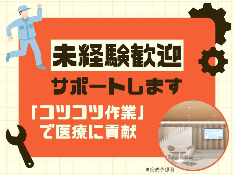仕事内容 世界120ヶ国以上で使われる 医療機器メーカー『日本光電グループ』で オープニングメンバーを募集! 未経験から一生モノの技術を身につけたい、 土日祝休みでプライベートも大切にしたい、 そんな方に最適な環境です。 同期と一緒に新しいスタートを切りませんか? 安定企業で腰を据えて長く働きたい方、 意欲あるあなたをお待ちしています。 ―― この求人のポイント! *土日祝休み&年間休日126日でプライベート充実! *賞与年2回&皆勤手当あり!安定収入を目指せる *1食ワンコイン以下!格安の社員食堂完備で節約にも◎ *2026年5月勤務開始!綺麗な新工場で快適ワーク 【仕事内容】 心電図検査などで使われる使い捨ての「ディスポ電極」などの生産業務をお任せします。 ~具体的には~ ■ゲル液の調合 電極に使われるゲル(ジェル状の液体)を、手順書に従って混ぜ合わせる調合作業です。 ■生産・目視検査・包装 機械での生産補助や、出来上がった製品にキズがないかの目視チェック、製品の包装作業などを行います。 ~入社後について~ 入社後は丁寧な研修から始まりますので、製造業が初めての方もご安心ください。一つひとつの作業を確実に覚えていける環境で、皆さんのスタートをしっかりとサポートします。 ★新工場のオープニング1期生★ 勤務地は鶴ヶ島インター近くに完成する真新しい工場です。最新の空調設備や清潔な休憩スペースなど、働きやすさを追求した環境が整っています。オープニングスタッフとして、工場の歴史をイチから作っていく面白さを味わえます。 ※入社後の研修の一環として、川本工場(埼玉県深谷市)への出張があります。 //////////////// 【大手グループならではの安心感】 日本光電グループは、国産唯一のAEDメーカーであり、生体情報モニタでも国内トップシェアを誇ります。その製造拠点である当社も、安定性は抜群。景気に左右されにくい医療業界で、安心して長く働き続けたい方に最適な環境です。 【私生活と両立しやすい働き方】 土日祝は完全にお休み。GW、夏季、年末年始には長期休暇もしっかりあります。「趣味の時間」や「家族との時間」を大切にしながら、メリハリをつけて働けます。有給休暇も1時間単位で取得可能なので、ちょっとした用事にも柔軟に対応できます。 【充実の待遇と環境を完備】 賞与は年2回(6月・12月)に加え、業績により5月にも支給のチャンスあり。皆勤手当も毎月支給されます。また、社員なら誰でも利用できる食堂も完備。豊富なメニューの麺類や定食を、お財布に優しい価格帯、ワンコイン以下でご提供します。毎日温かくて美味しいご飯がお得に食べられるので、独り暮らしの方や節約派の方にも大好評です。 【未経験から正社員を目指せる】 製造経験がない方も大歓迎。入社後は丁寧な研修で基礎からしっかりレクチャーします。意欲次第で、登用試験合格後には正社員を目指すことが可能です。異業種からの転職者も多数活躍しており、あなたの新しい挑戦を全力でサポートします。 //////////////// ー 当社について。 私たちは、AEDや心電計、生体情報モニタなど、世界120ヶ国以上の医療現場で愛用される「日本光電ブランド」の製造を担う企業です。「医療に国境はない」という想いのもと、鶴ヶ島から世界へ、最高品質の医療機器を送り出しています。