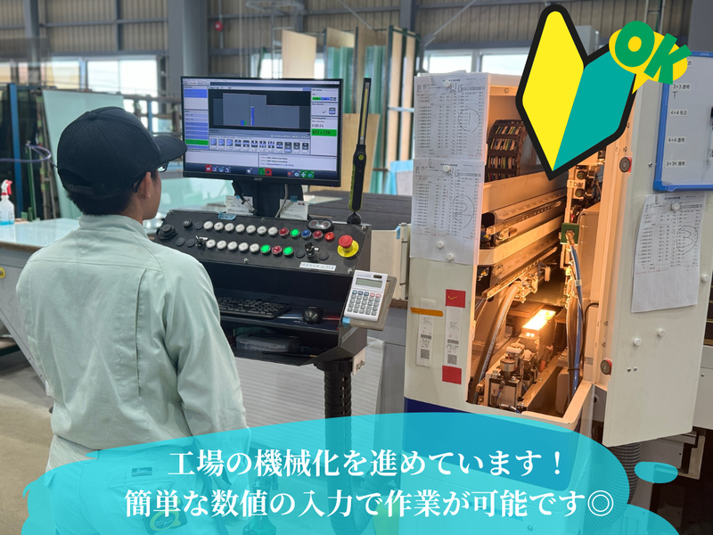 仕事内容 ▼働きやすい理由&魅力▼ ✅機械操作メインで未経験でも活躍できる! ✅残業は月数時間程度!プライベートも充実 ✅賞与年2回&各種手当も充実で収入安定! ✅豊富な納入実績、創業60年超の安定企業 ✅資格取得費用は全額会社負担!スキルUP 【業務内容】 アサヒ製鏡は、内装用ガラスの販売・加工・施工をおこなっている専門会社です。 LOUIS VUITTONやHERMÈSなどの一流ブランドショップから量販店、病院や学校など、様々なお店や施設向けの、内装用ガラス(ガラスケースや鏡など)の切断・加工業務をお任せします。 自身がてがけた製品が様々な空間を彩るやりがいのあるお仕事です。 ▼ 具体的なお仕事の流れ ▼ ①寸法を入力(タッチパネル操作) ②ガラスをセット(クレーン補助) ③自動カット、研磨後に仕上げ確認 オーダーメイド方式のため、都度寸法やガラスの種類を確認しながら作業をおこないます。 最新式の機械を多数導入しているため、むずかしい操作はなく、未経験でも安心です。 加工後のガラスを移動する際など、一部は人の手でおこなっています。 ※手作業で扱う重量は、女性でも運搬可能な範囲です。 ✨経験ゼロでもこれで安心✨ 1.国内にも数台しかないような希少な機械を導入し、省力化を進めています。 2.先輩のサポートのもと、少しずつ業務を覚えられる教育体制を整えています。 3.現場作業に必要な資格は、会社負担で取得が可能です。 【取得可能なスキルや職位など】 まずは、現場研修で順々に機械操作を習得いただくところからスタート。 作業の幅を広げていただく過程で、希望に応じて玉掛けやフォークリフト等の技能講習の取得が可能です。 ゆくゆくは施工や営業の責任者や、後輩の育成・マネジメントを担う幹部候補としてのキャリアも描け、年収アップも可能です。