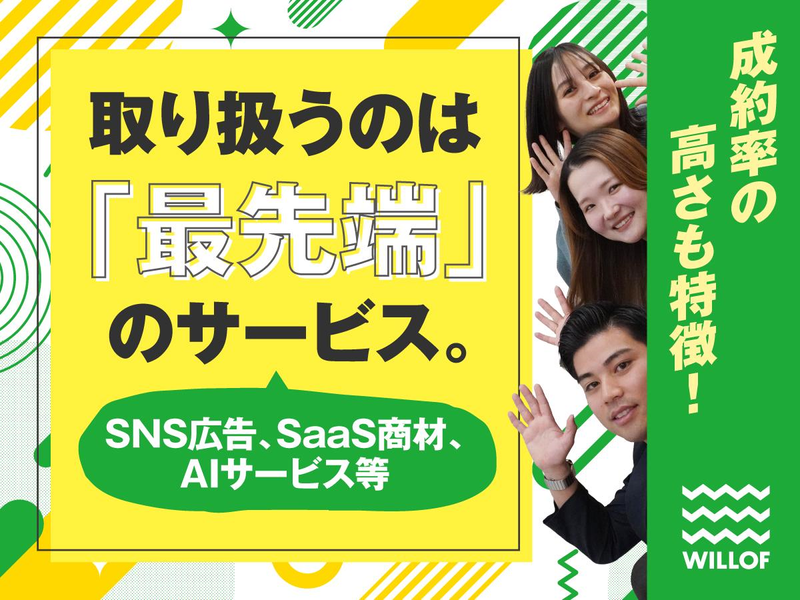 仕事内容 ”仕事”も”遊び”も全力で! 自分の時間が増える、メリハリのある働き方◎ \\ オフも充実!3つのPOINT // ★ 残業1日0〜15分! 定時後は自分の時間をたっぷり確保 ★ 年休131日以上!(計画的有給付与6日) 土日祝休み+有給で旅行や趣味も満喫 ★ 転勤なし!ライフスタイルも大切に 【 具体的なお仕事の流れ 】 「定時で帰れる」秘密は、効率的なチーム制&分業制にあり! 一人で抱え込まず得意な分野に集中できる為、業務時間内にしっかり成果が出せます。 ※希望や適性に合わせて「インサイドセールス」「フィールドセールス」「カスタマーサクセス」いずれかのポジションをお任せします。 ▶ STEP 1:リサーチ&アプローチ 企業の課題を分析し、電話などでアプローチ。「トークスクリプト(台本)」完備なので、悩む時間が少なくスムーズに進められます! ▶ STEP 2:商談・提案(WEB・訪問) 興味を持っていただいたお客様へご提案。移動時間のない「オンライン商談」も活用し、効率よく働けます♪ ▶ STEP 3:契約・フォロー 契約手続きや導入後のアフターフォローを実施します。チームで連携して進めるため、分からないことはすぐに相談できる安心の環境です! ★ 扱うのは話題のトレンド商材 ★  ̄ ̄V ̄ ̄ ̄ ̄ ̄ ̄ ̄ ̄ ̄ ̄ ̄ ̄ ̄ ̄ ̄ 効率よく提案できる、ニーズの高い商材が中心! 「興味がある!」と言ってもらいやすいから、話も弾みます。 < プロジェクト例 > * 話題のキャッシュレス決済サービス * 業務効率化のSaaS・DXツール * 最新のAIチャットボット * 人気のコスメ系SNS広告 など ★ プライベート重視派に嬉しい制度 ★  ̄ ̄V ̄ ̄ ̄ ̄ ̄ ̄ ̄ ̄ ̄ ̄ ̄ ̄ ̄ ̄ ̄ ̄ しっかり休めるから、月曜日も笑顔でスタートできる! 「ピットイン休暇(4連休)」や「誕生日休暇」など、ウィルオブならではのユニークな休暇制度もたっぷり用意しています。 / 3年後、仕事もプライベートも 理想のスタイルへ! \ 「残業なし」でも「スキル」はしっかり身につく環境です。 ここなら、自分らしい生活リズムを崩さずに、市場価値の高いビジネススキルを手に入れられます。 ・趣味の時間をもっと増やしたい ・友達や家族との予定を大切にしたい ・オンオフ切り替えて働きたい そんなあなたにピッタリの職場です!