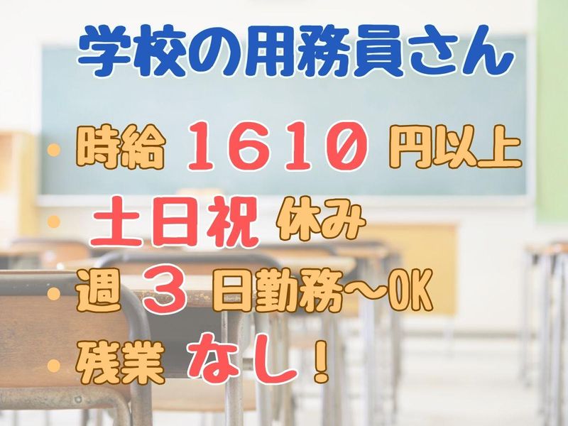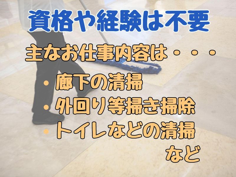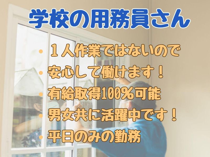 仕事内容 【仕事内容】 世田谷区立中学校内での用務・清掃業務をお任せします。 難しい作業や力仕事はありません。 具体的には… ●校内・校外の清掃 (教室、廊下、階段、トイレ、水回りなど) ●校庭や花壇の簡単な管理 (水やり、草取りなど) ●来客対応、荷物の受け取り ●校内巡回、設備の簡単な確認 ※最初は先輩スタッフが丁寧に教えます。 できる作業から少しずつ慣れていけば大丈夫です。 「静かに、コツコツ。地域を支える仕事です」 学校という落ち着いた環境で、 決まった業務を、決まった場所で。 体に無理のない範囲で働きながら、 地域と子どもたちを支える―― そんな“縁の下の力持ち”として活躍しませんか。 【この仕事のポイント】 ■未経験・無資格OK 特別な経験や資格は一切不要。 清掃や軽作業が中心なので、初めての方も安心です。 ■平日のみ × 残業なし 月~金の固定勤務。 生活リズムが安定し、長く続けやすい環境です。 ■固定勤務地(転勤・移動なし) 毎日同じ学校での勤務。 現場が変わらないため、慣れればスムーズに働けます。 ■人との会話は最小限 接客業務はほとんどなく、 黙々と作業したい方に向いています。 ■社会貢献度の高い仕事 学校の安全・快適な環境を守る、 やりがいのある公共施設のお仕事です。