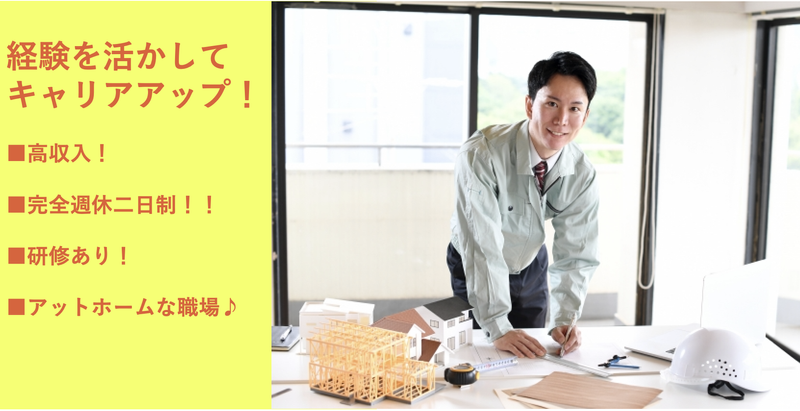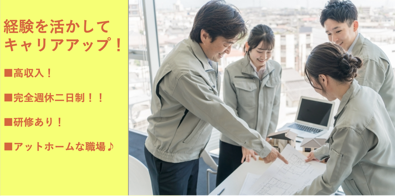 求めている人材 建築に関わったことのある経験が1年以上ある方 第二新卒歓迎!学歴不問! 《必須条件》 ◆建築に関わったことのある経験が1年以上ある方 《歓迎条件》 ●建築関係の学部・学校をご卒業されている方 ●リフォームの営業や設計経験 ●建築関係設計経験 ●CAD図面作図(JW、アーキトレンド) ●見積り作成等一般的なスキル ●お客様対応経験 等をお持ちの方、建築系資格所持者の方優遇いたします。 「子育てでブランクはあるけど少しずつ仕事を再開していきたい!」 「資格はあるけど仕事の経験が少なく自信がないが試しに働いてみたい!」 「現場監督をしているが営業や設計も経験してみたい!」 「色々な工事内容を経験してみたい!」 ・・・等希望・アピールがございましたらどしどしご応募下さい! 将来的に店舗数を増やしていく計画もございますので 向上心のある方もご応募お待ちしております◎
