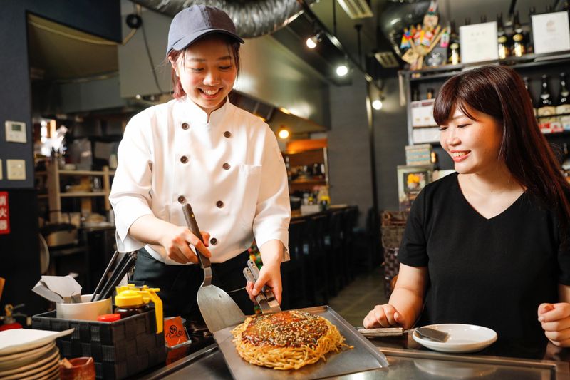 広島駅近くのお好み焼きと鉄板焼き店のスタッフ